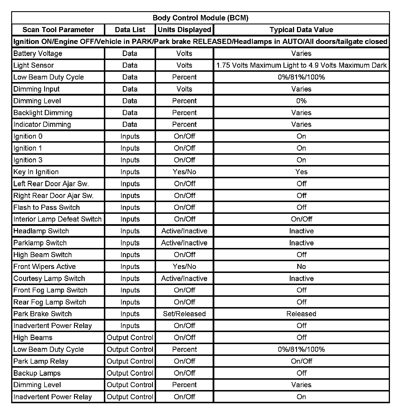 Body Control Module (BCM):