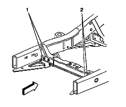 2.Install the upper transmission support to the frame mounting bolts (1, 2).