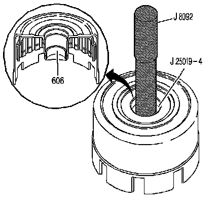 3. Using the J 25019-4 with the J 8092, remove the reverse input clutch rear bushing (606).