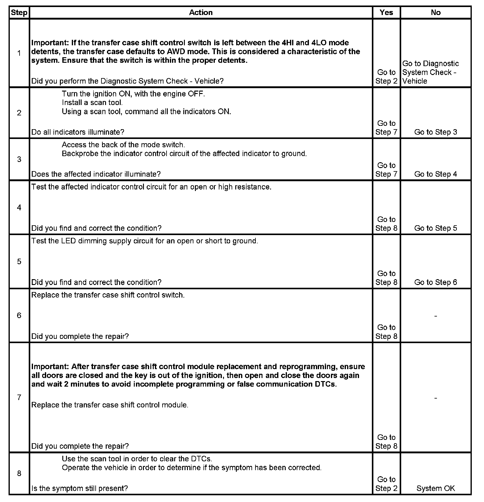 2. This step tests the transfer case electrical control of the lamp circuits.