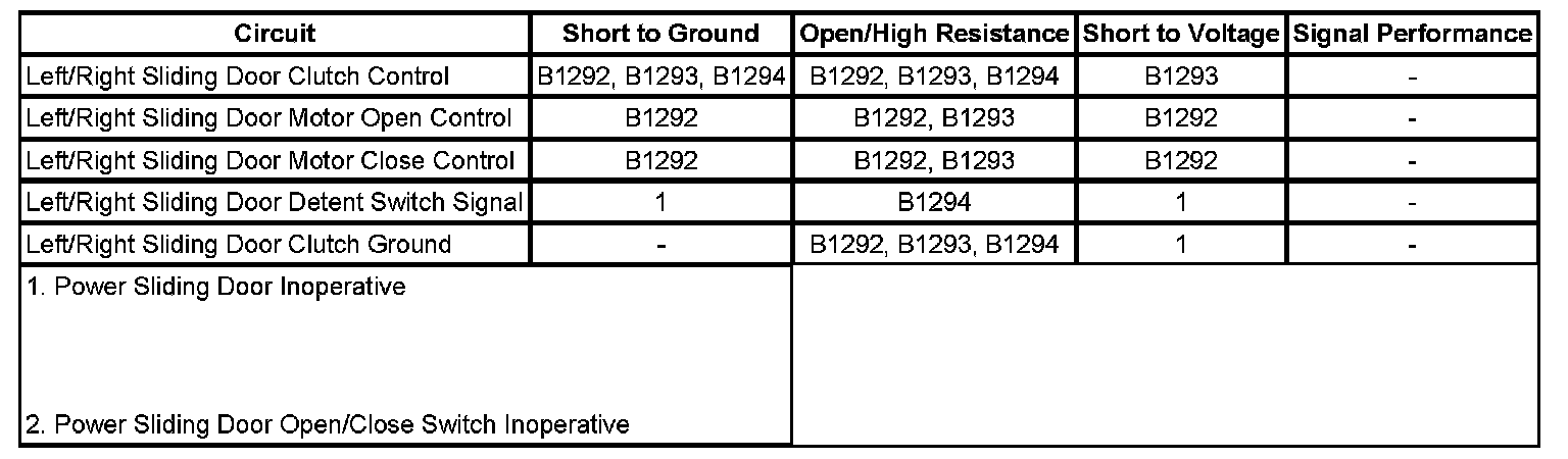 If the affected power sliding door fails to function and sets B1292, B1293 and B1294, refer to Sets B1292, B1293 and B1294. B1292 B1293