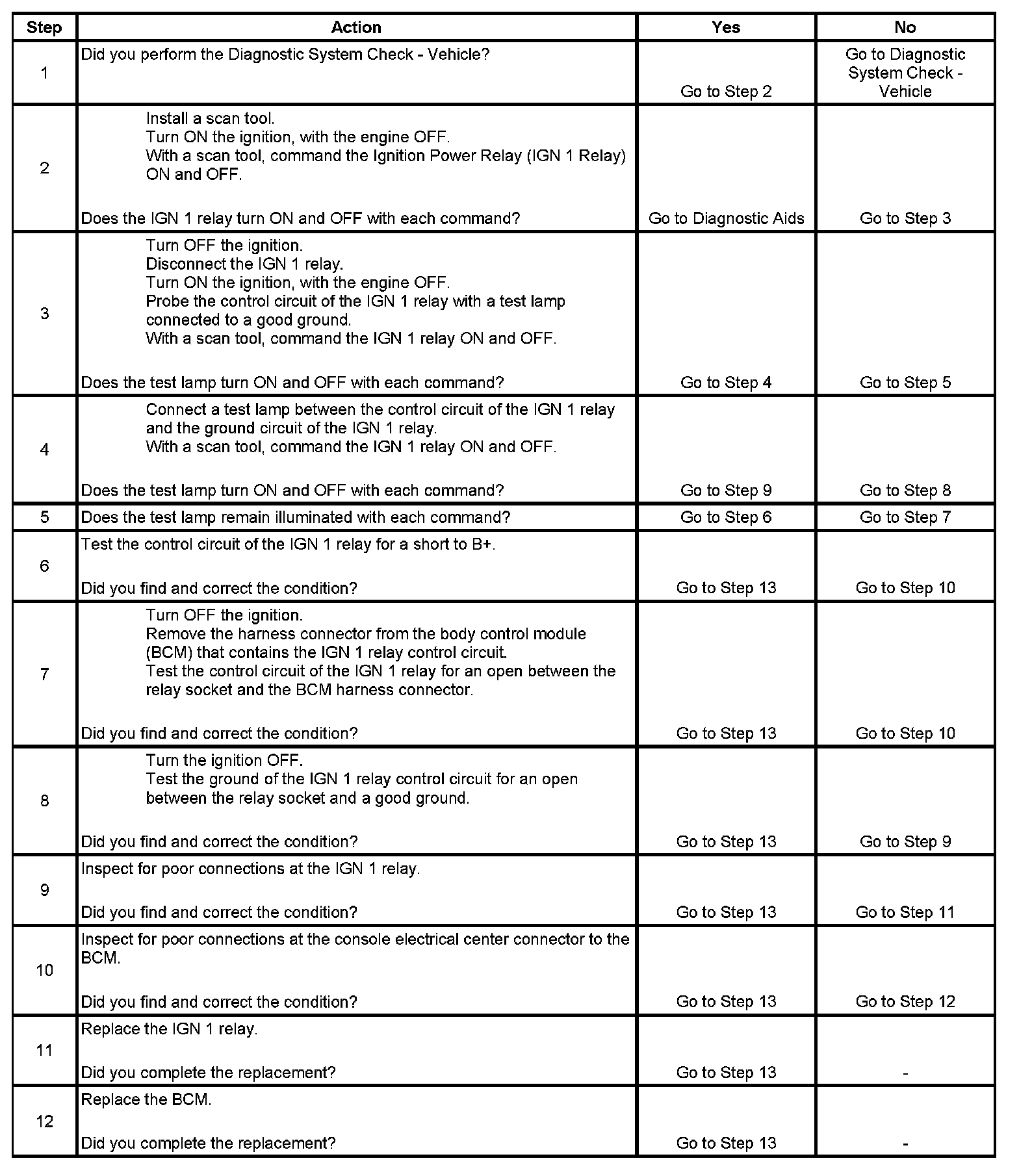 * A DTC B1428 sets when the BCM detects an open in the IGN 1 relay control feed circuit when it is trying to energize the IGN 1 relay.