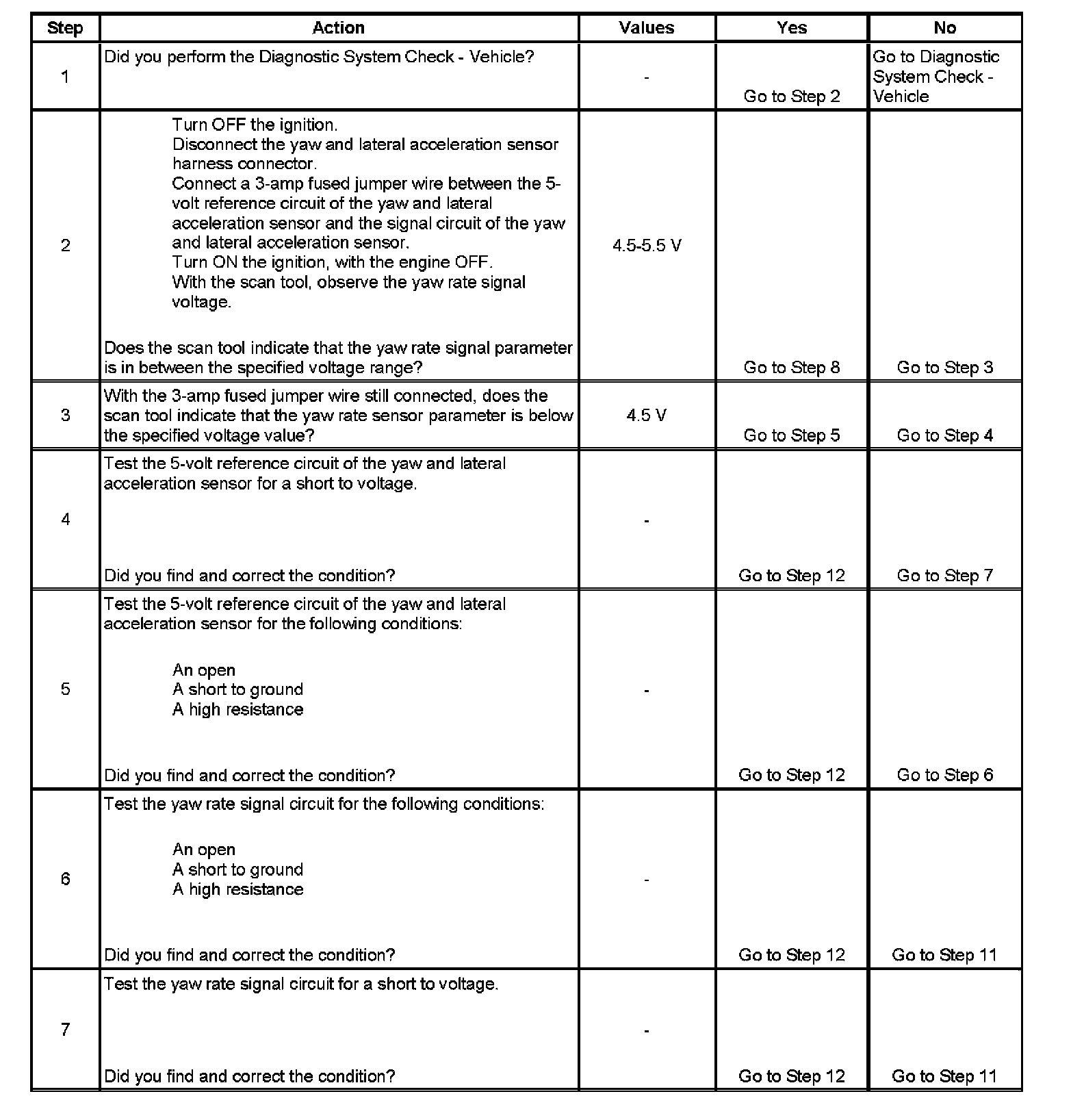 * The yaw rate signal is less than 0.18 volt or greater than 4.84 volts.