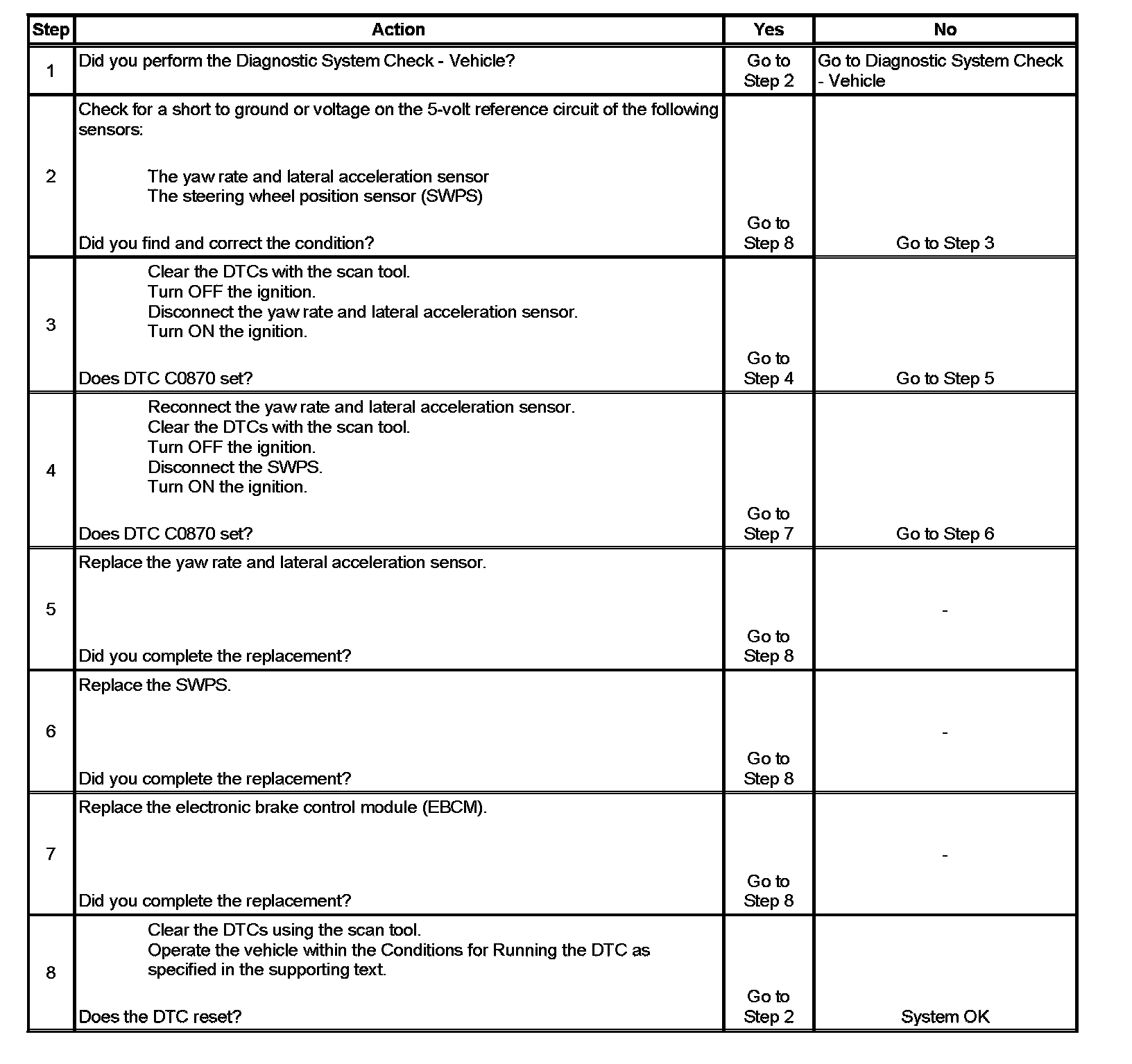 3. This step tests for an internal short to ground in the yaw rate and lateral accelerometer sensor.
