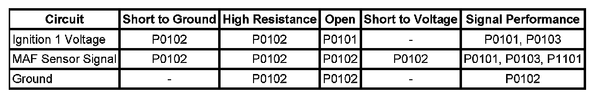 Mass Air Flow (MAF) Sensor Circuit Low Frequency