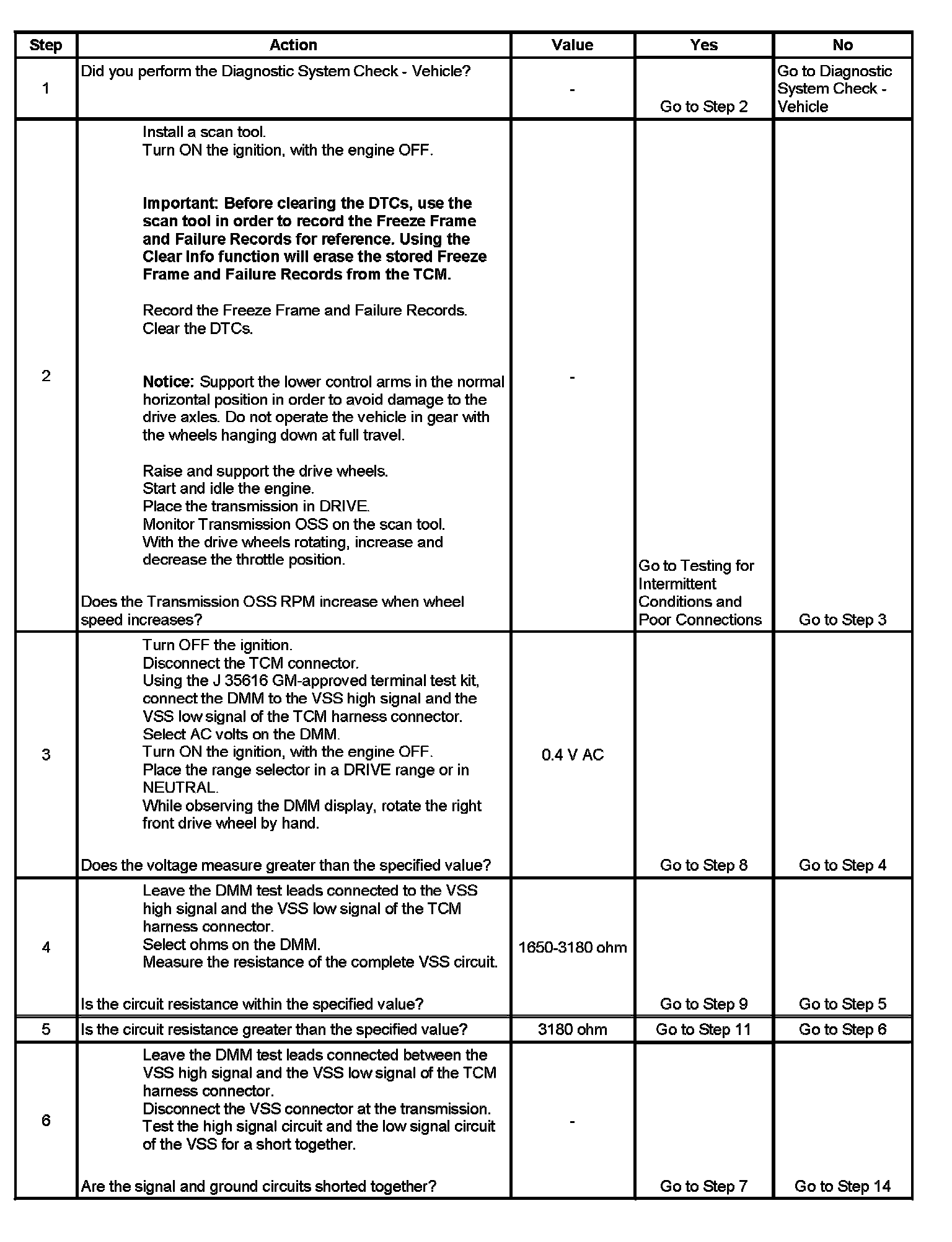 3. This step tests the ability of the VSS to produce an AC voltage and verifies the integrity of the wiring to the TCM.