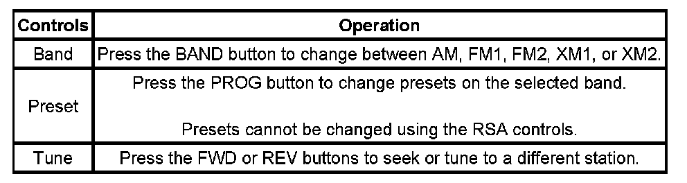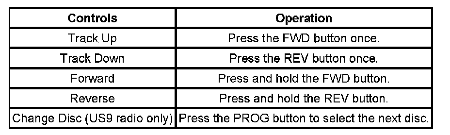 If RSA source is single CD player (US8 radio) or 6 disc in-dash CD changer (US9 radio), users may perform the following operations: