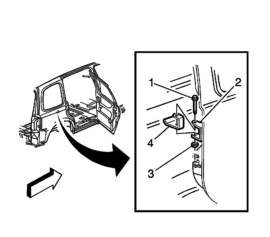 4. Remove the pin (1) from the sliding door center roller bracket.