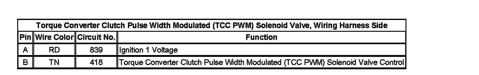 Torque Converter Clutch Pulse Width Modulated (TCC PWM) Solenoid Valve, Wiring Harness Side: