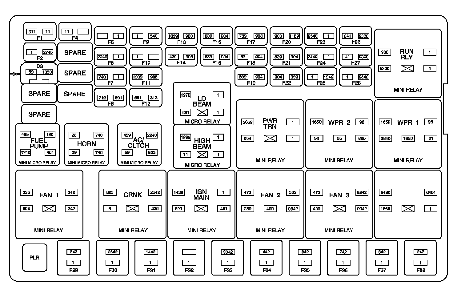 Fuse Block - Underhood Top View