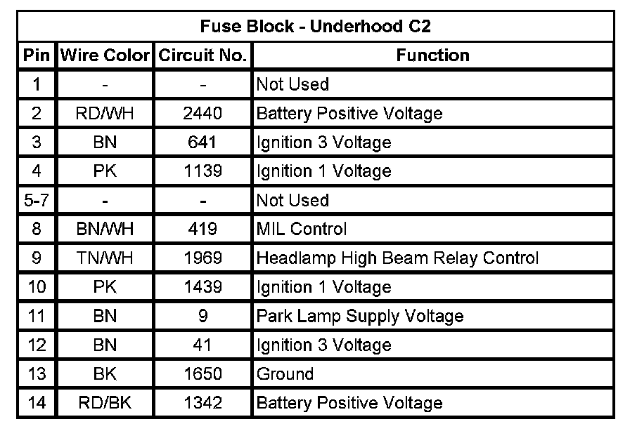 Fuse Block - Underhood C2 (Pin 1 To 14):