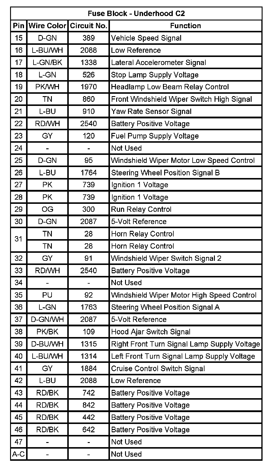 Fuse Block - Underhood C2 (Pin 15 To A-C):
