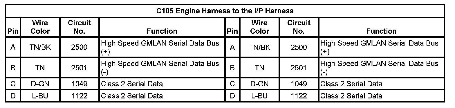 C105 Engine Harness to the I/P Harness
