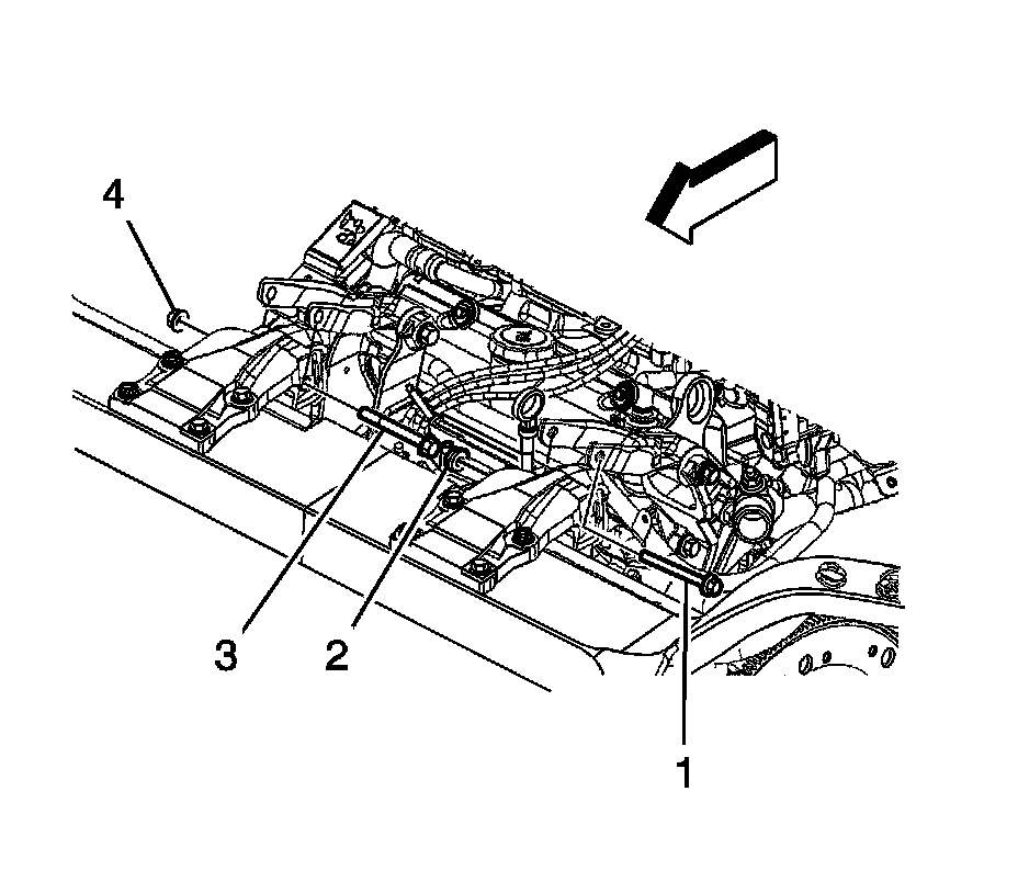 3. Remove the engine mount strut bracket through bolt nut (3).