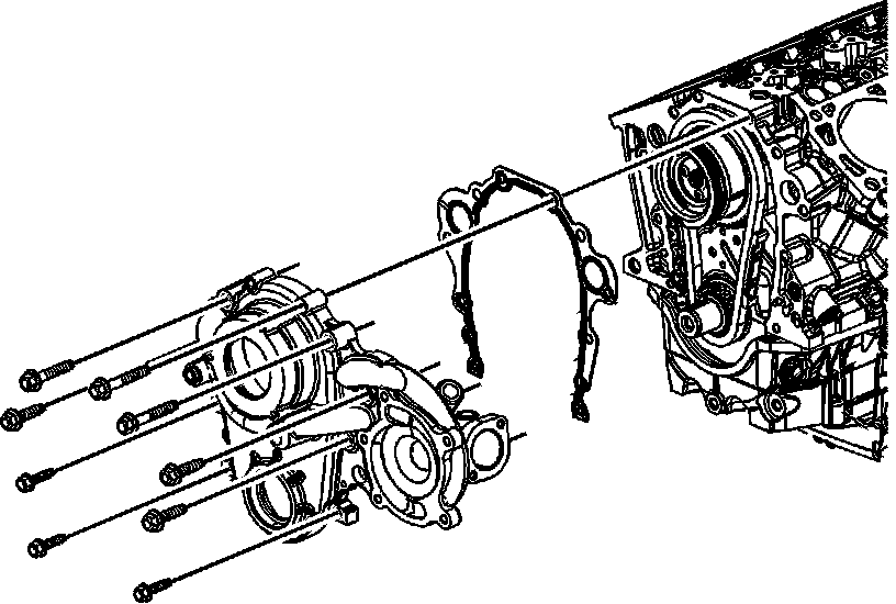 8. Remove the engine front cover bolts.