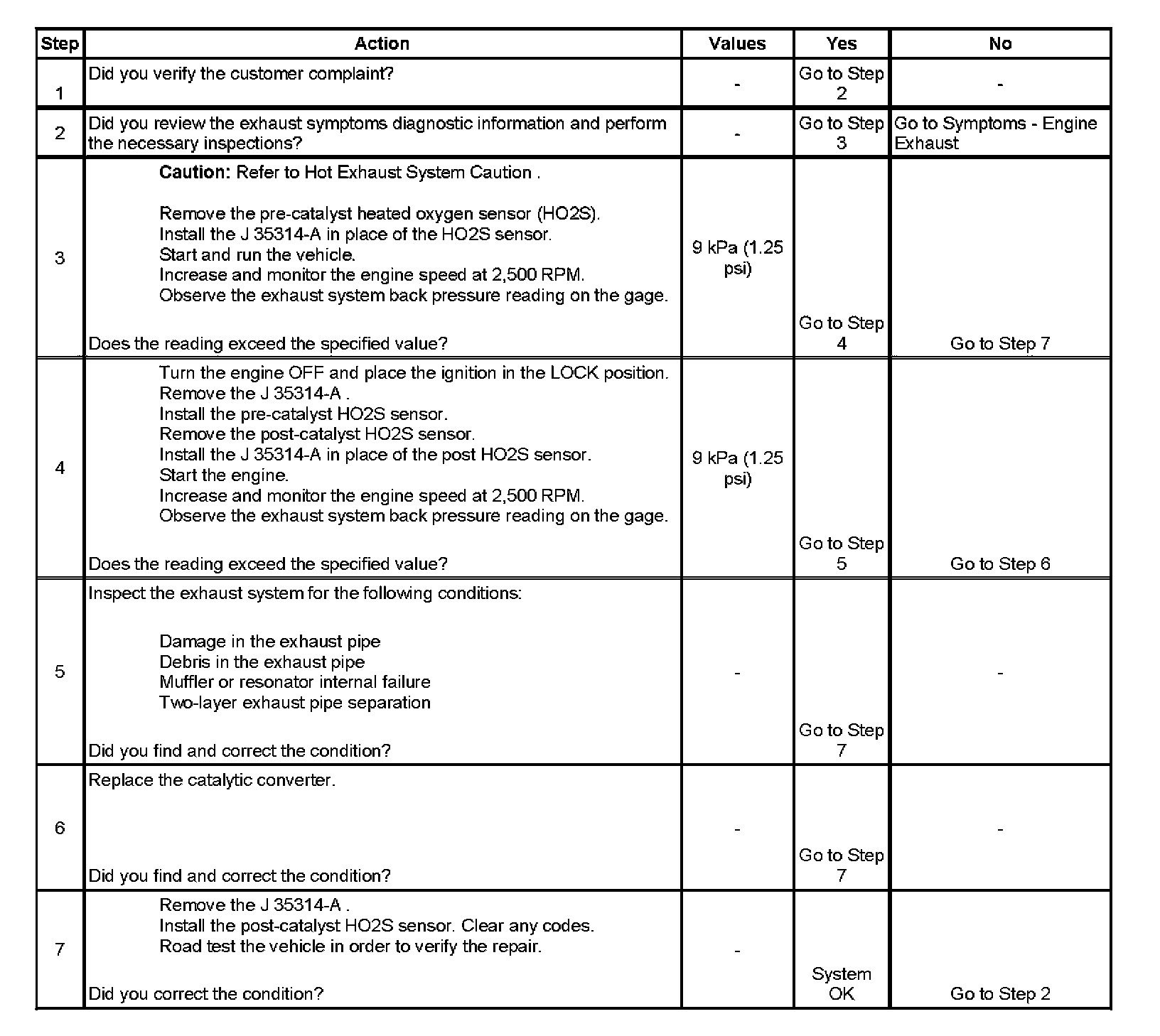 Removing the heated oxygen sensor (HO2S) may set a DTC. When finishing this diagnostic table, be sure to clear all codes.