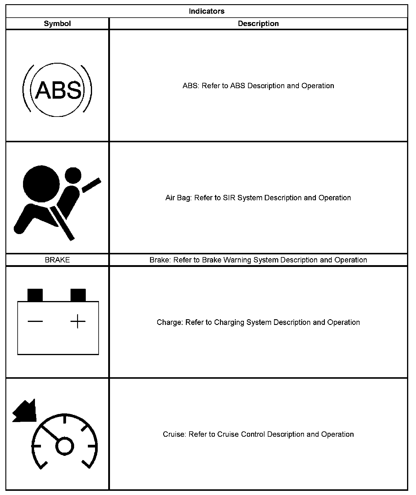 The instrument panel cluster (IPC) illuminates the OVERSPEED indicator when the IPC detects that the vehicle speed is more than 120 km/h (75 mph).