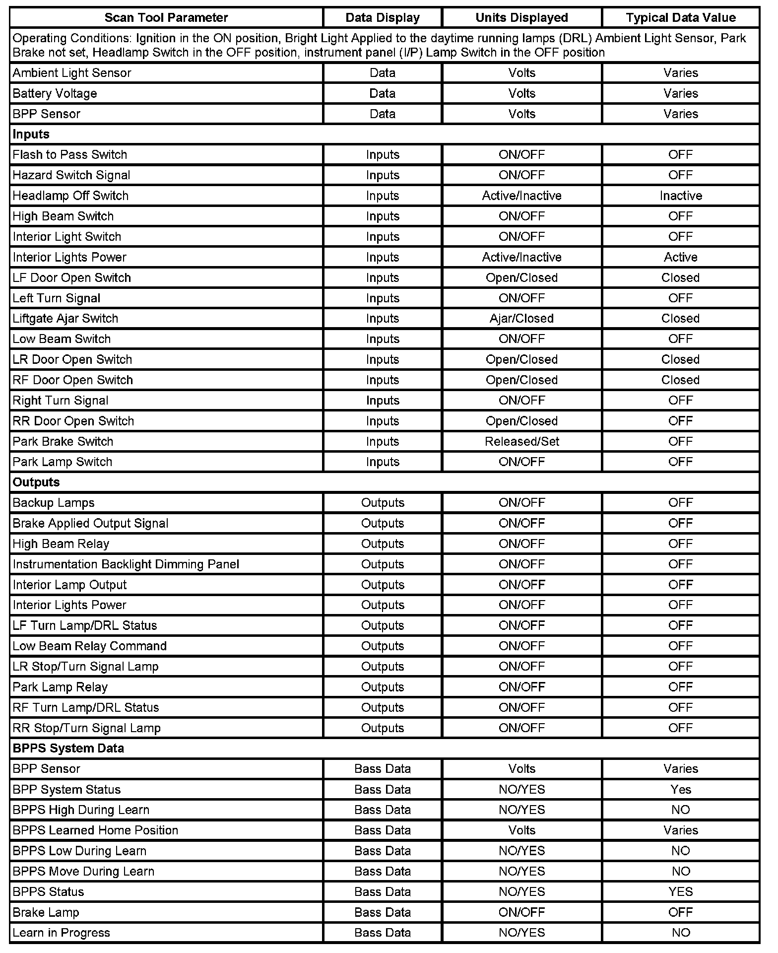 Scan Tool Data List