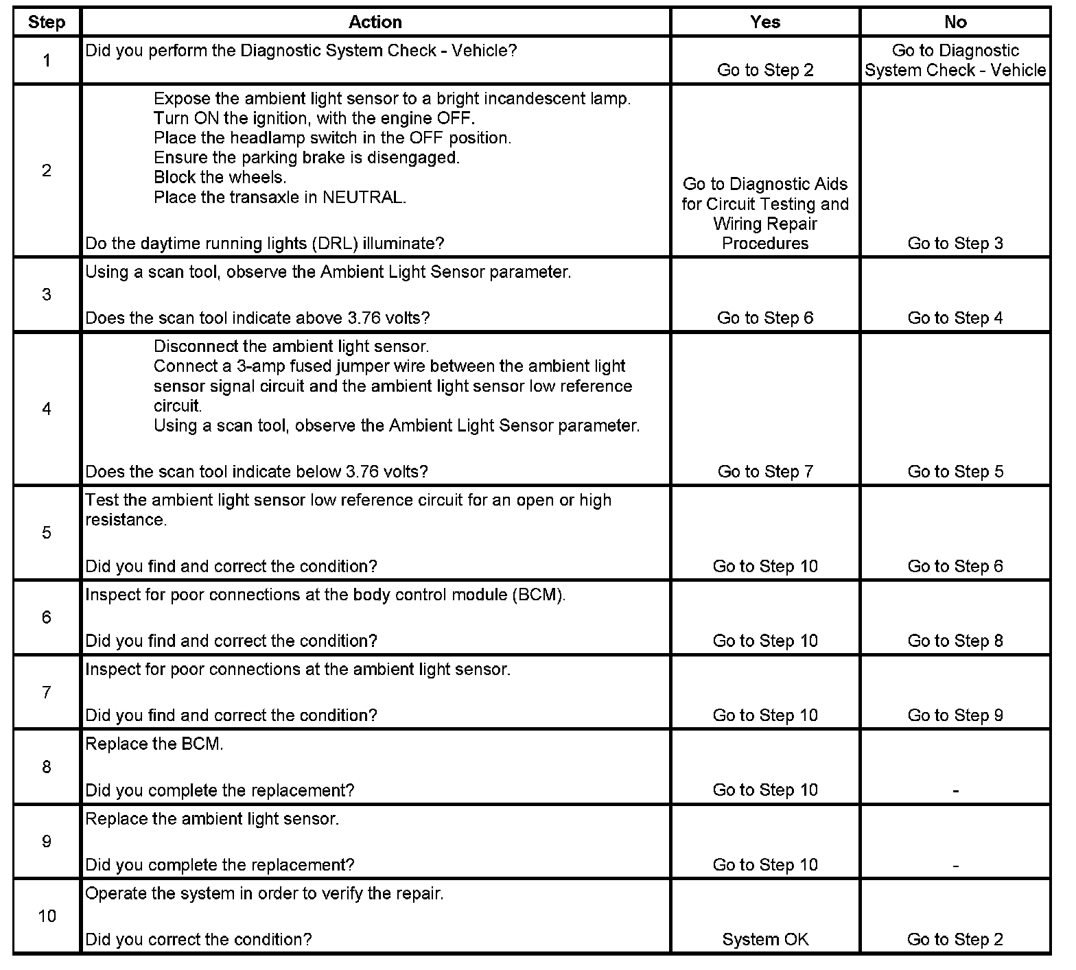 Daytime Running Lamps (DRL) Inoperative