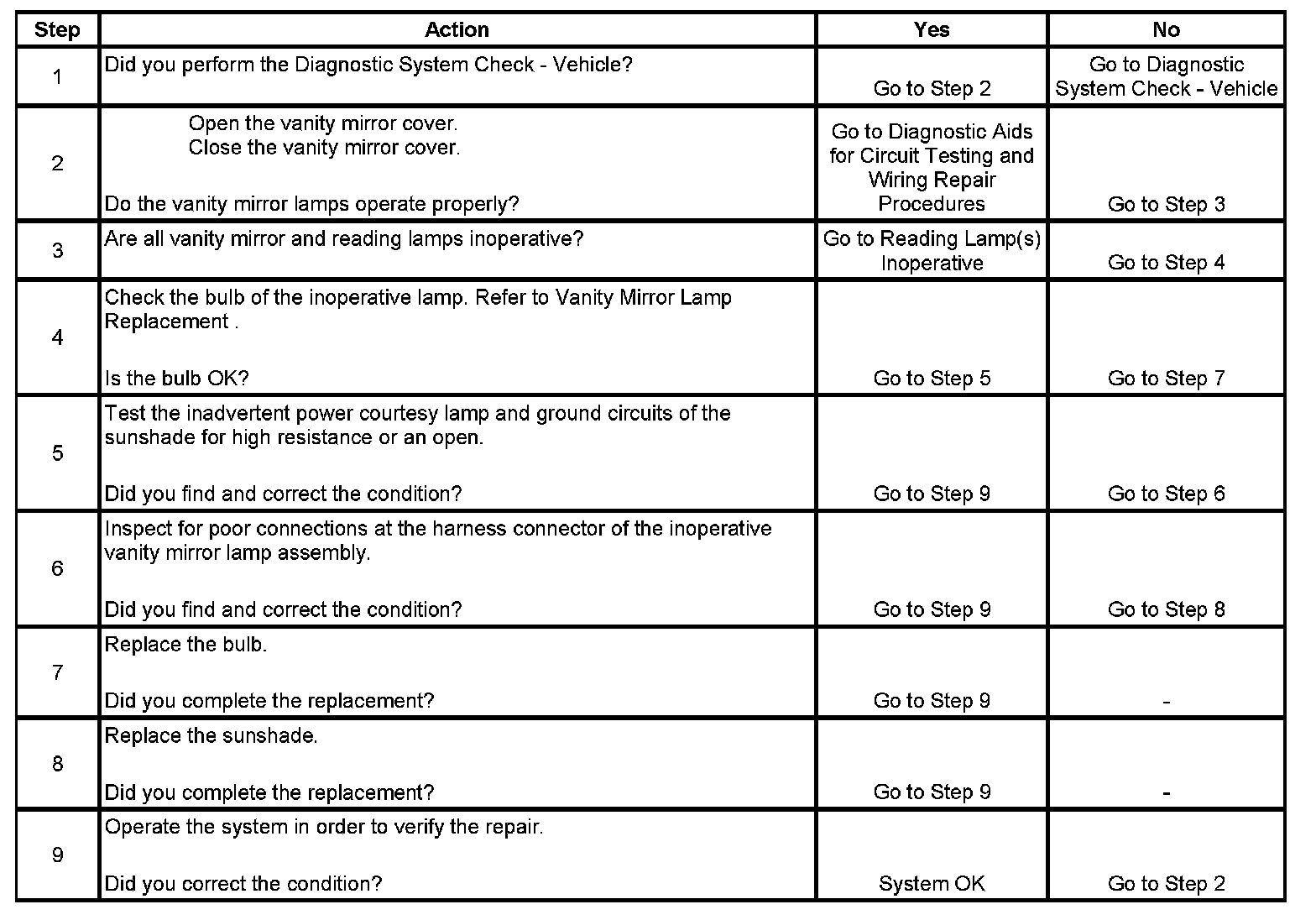 Vanity Mirror Lamp(s) Inoperative