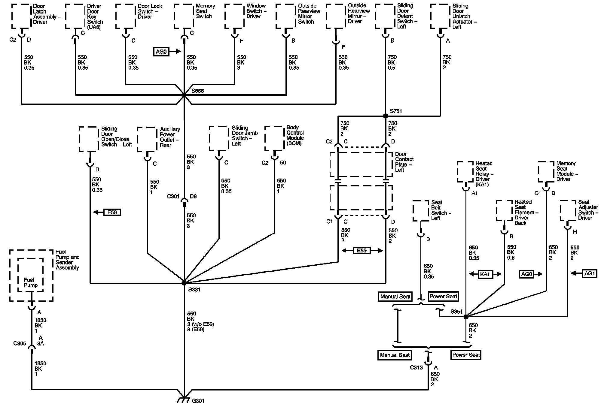 The locations for the Connectors, Grounds, Splices, and Grommets shown within these diagrams can be found via their numbers at Vehicle Locations.