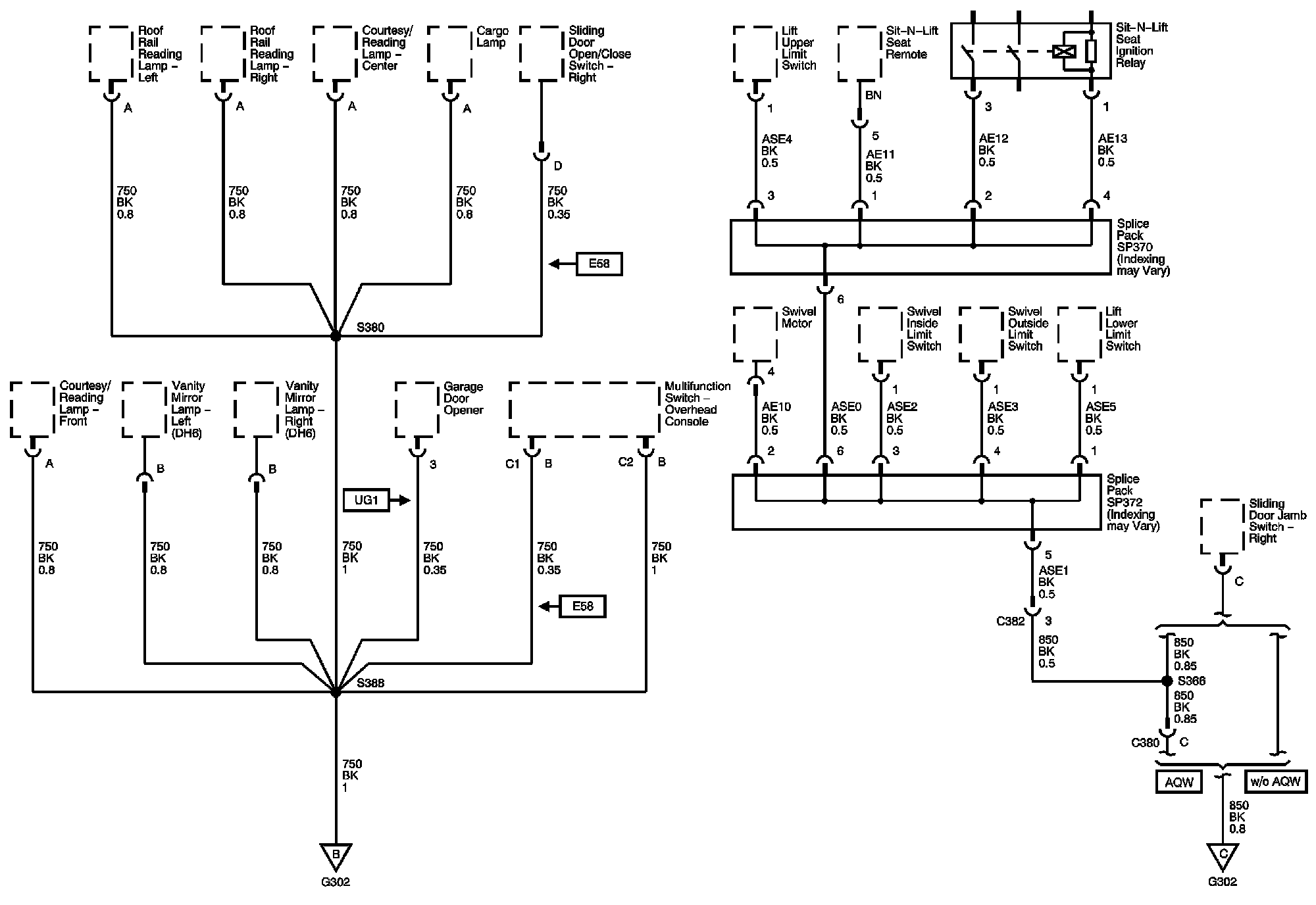 The locations for the Connectors, Grounds, Splices, and Grommets shown within these diagrams can be found via their numbers at Vehicle Locations.