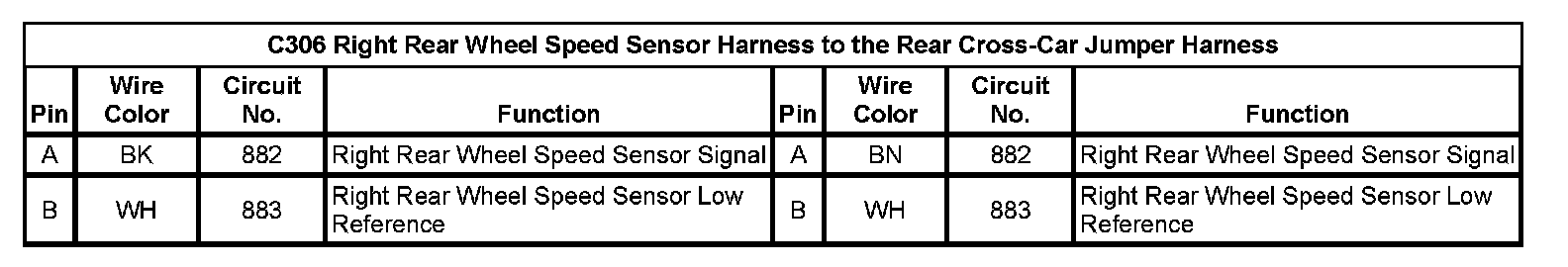 C306 Right Rear Wheel Speed Sensor Harness to the Rear Cross-Car Jumper Harness