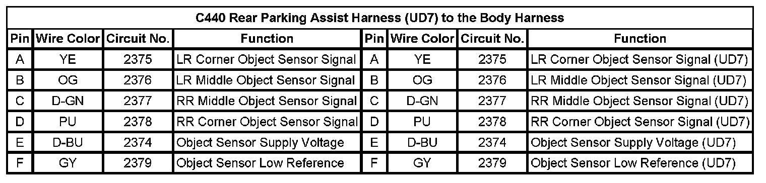 C440 Rear Parking Assist Harness (UD7) to the Body Harness