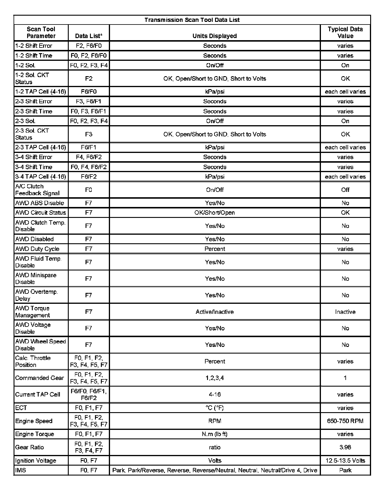 Transmission Scan Tool Data List (Part 3):