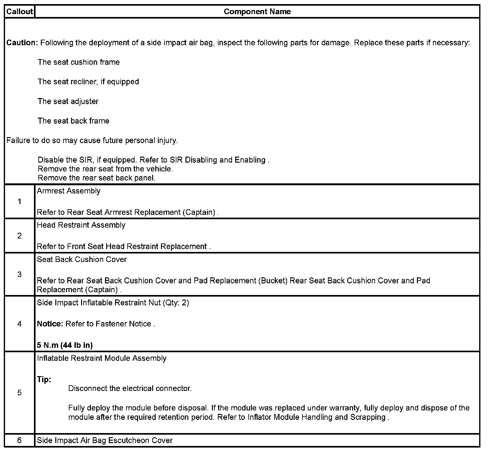 Inflatable Restraint Side Impact Module Replacement - Rear