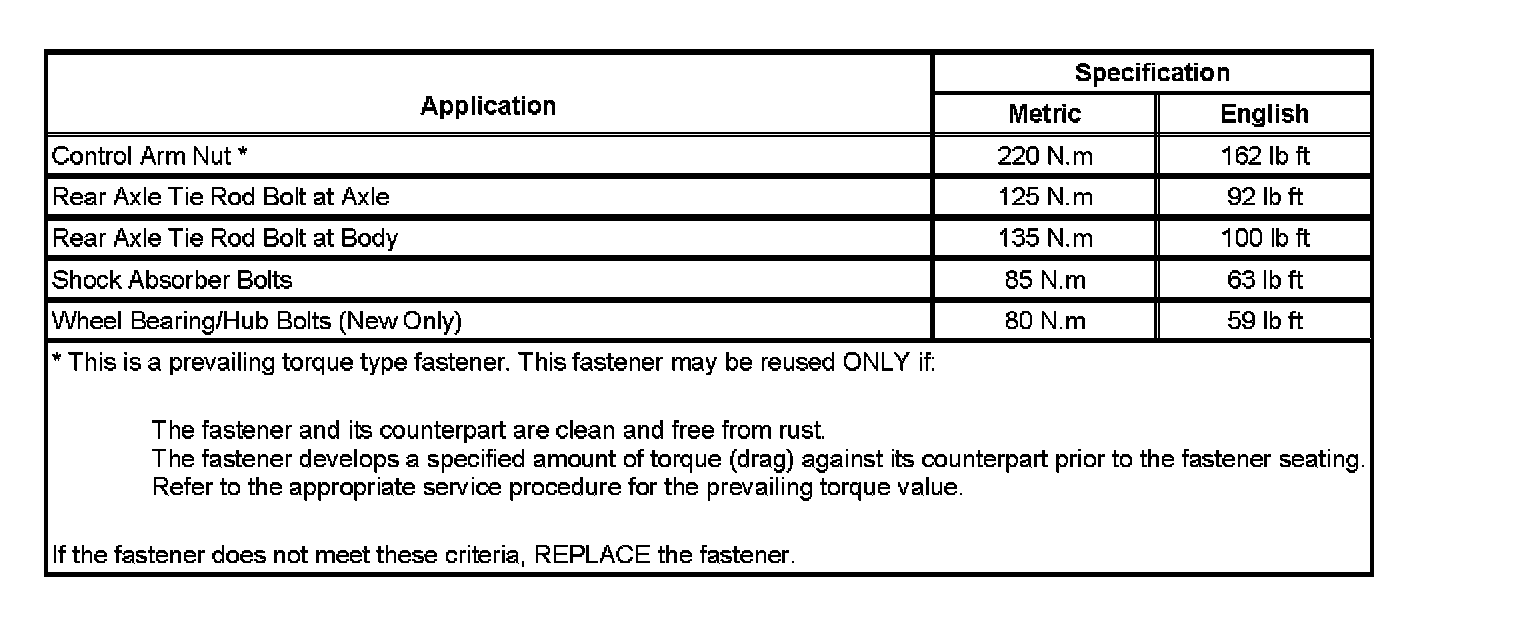 Fastener Tightening Specifications: