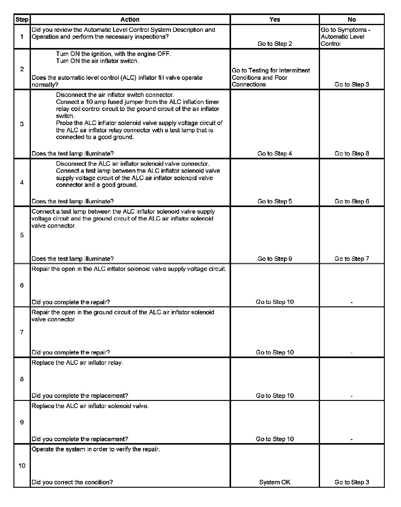 Automatic Level Control Inflator Fill Valve Inoperative