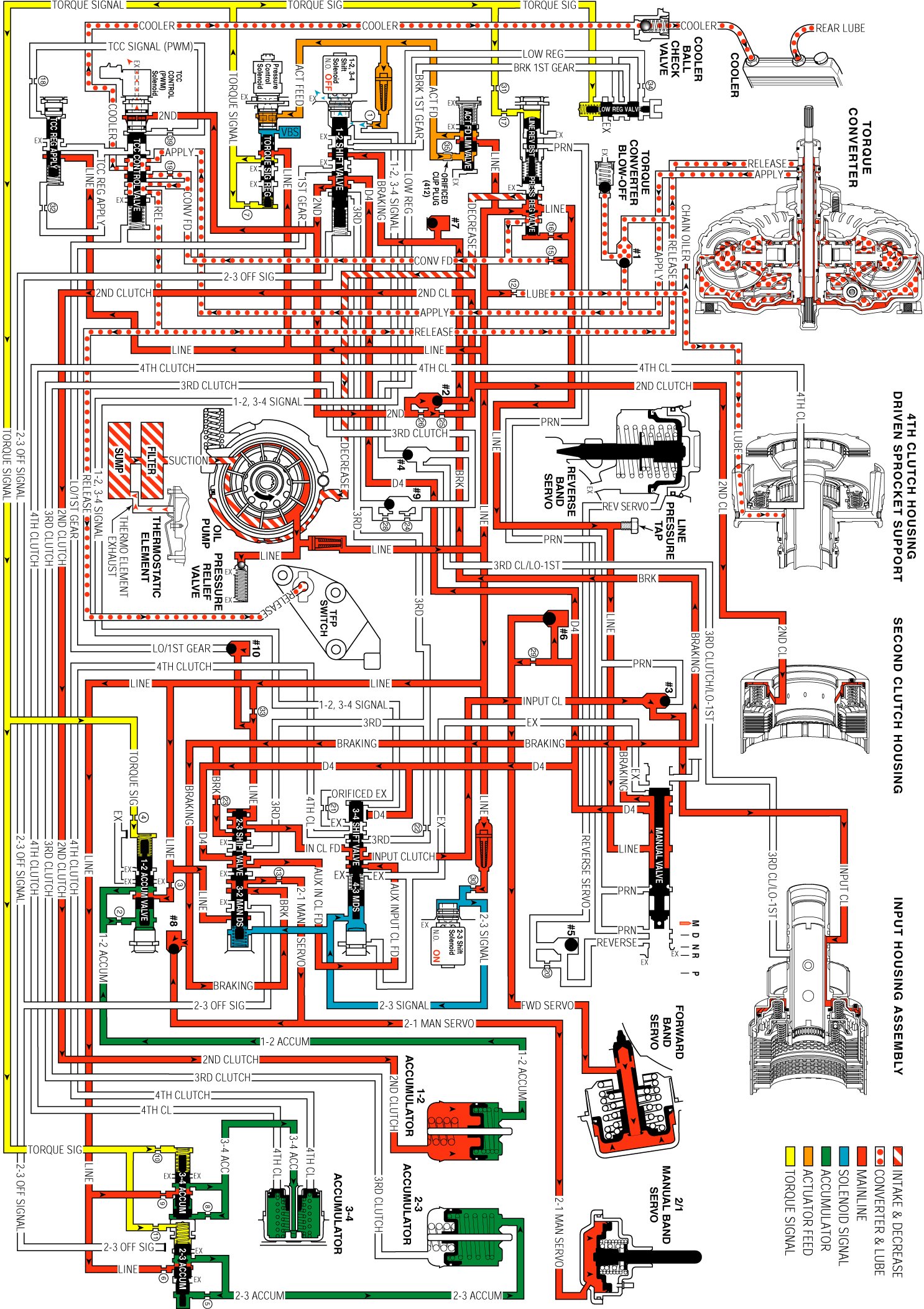 Located in the control valve body (300), is fed braking fluid from the manual valve (404) and directs it to the 2-3 shift valve (357).