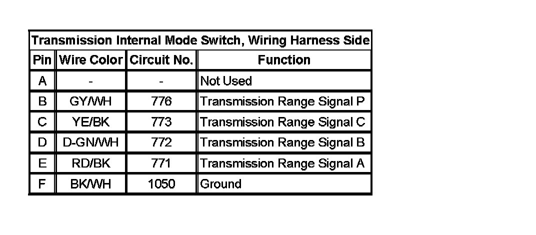 Transmission Internal Mode Switch, Wiring Harness Side