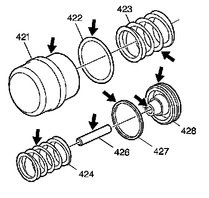 3. Inspect the 3-4 accumulator outer spring (423) and inner spring (424) for distorted or broken coils.