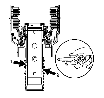 1. Use a rubber tipped air nozzle in order to apply a maximum 138 kPa (20 psi) at each indicated fluid passage.