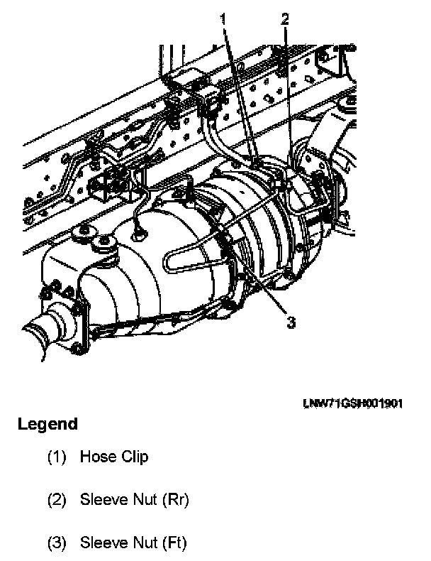 - To ensure there are no gas leakages, with the engine revved up, spray soapy water on the pressure hose (1) and sleeve nuts (2), (3) connecting parts.