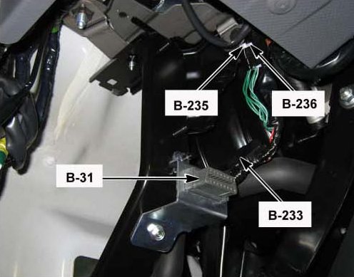 Connector B-31, On the lower left side of the I/P, left of the steering column.