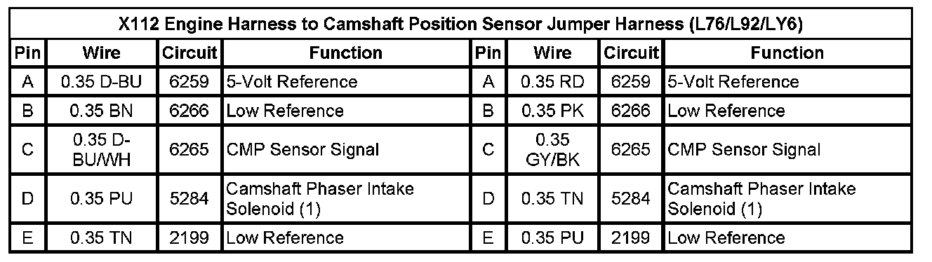 X112 Engine Harness to Camshaft Position Sensor Jumper Harness (L76/L92/LY6)