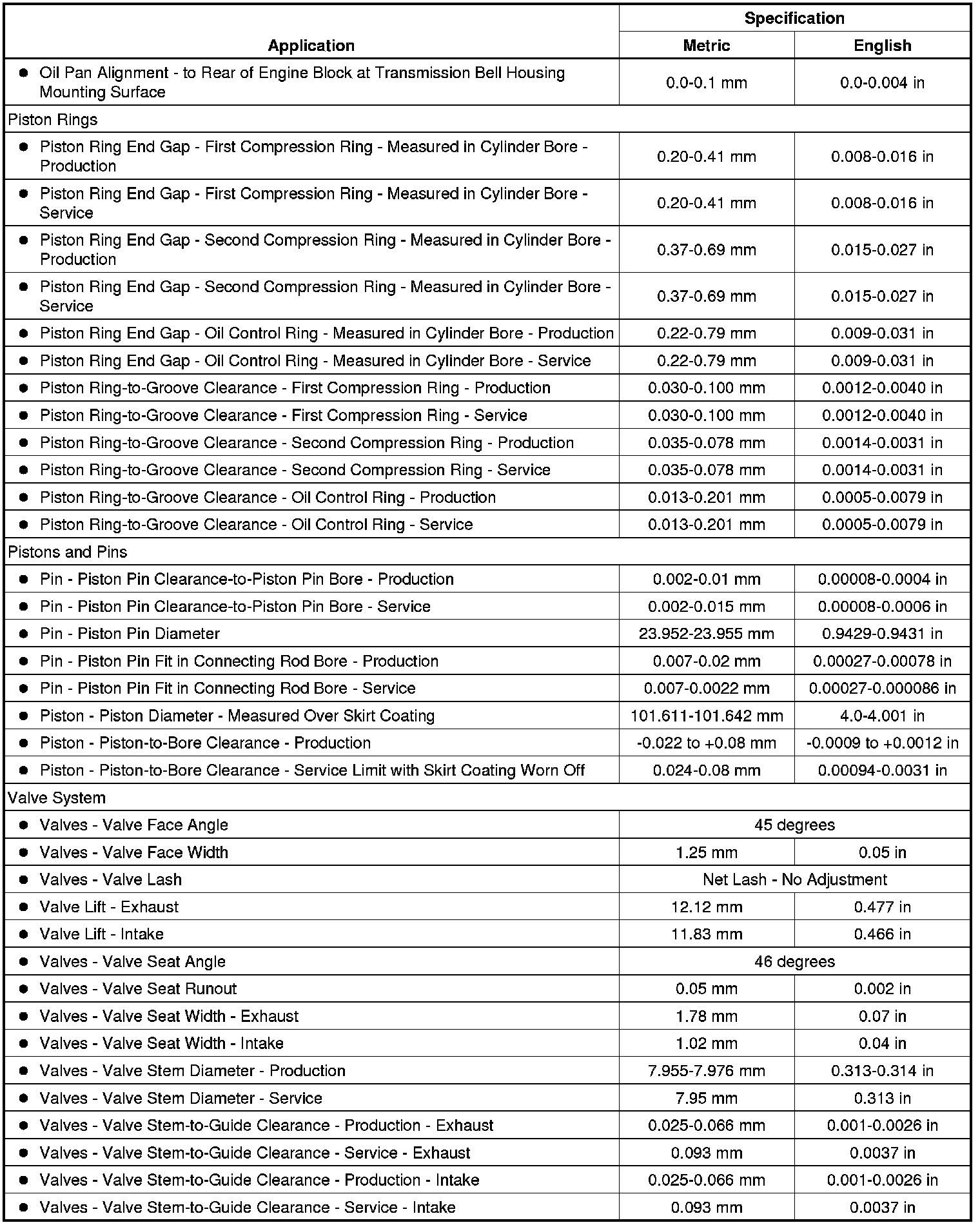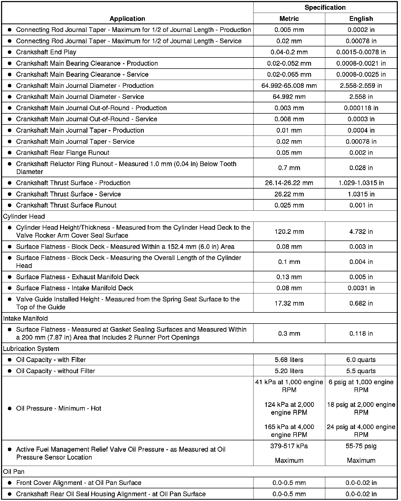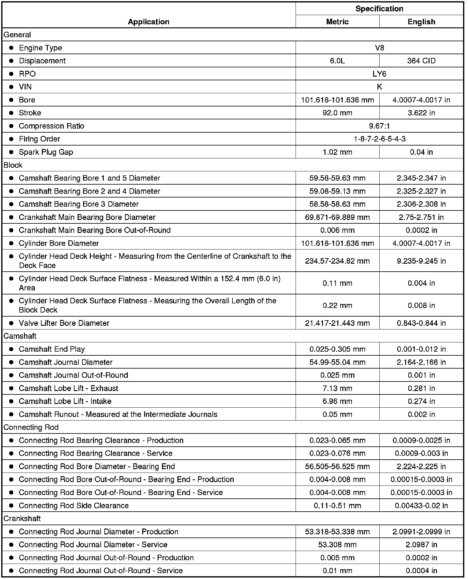 Engine Mechanical Specifications (RPO LY6 VIN K)