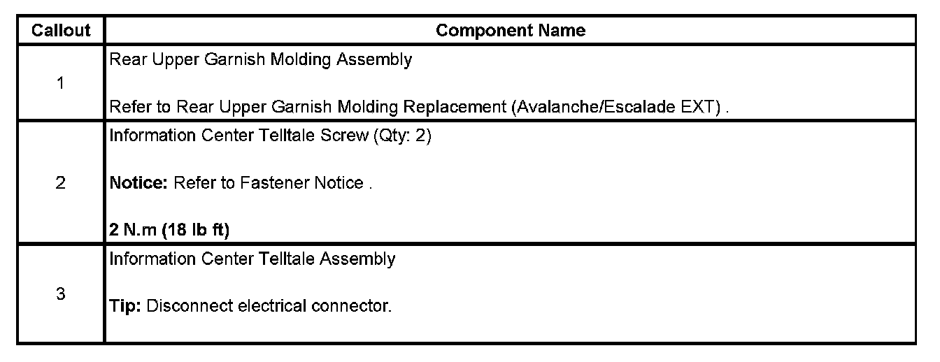 Information Center Telltale Assembly Replacement (Avalanche/Escalade EXT)