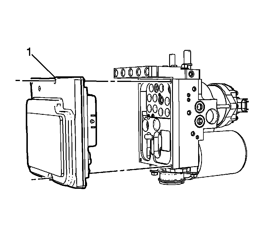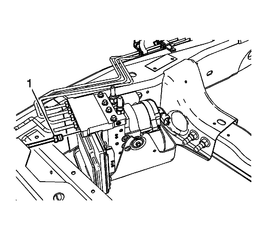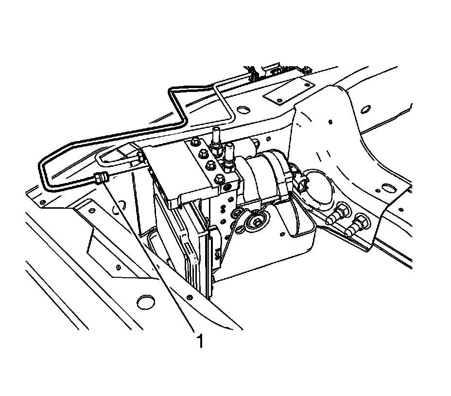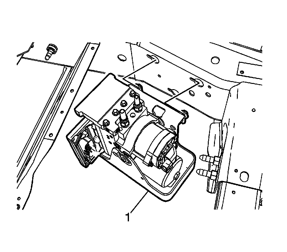 6. Slide the EBCM/BPMV and bracket assembly (1) toward the rear of the vehicle and install the assembly to the vehicle frame.