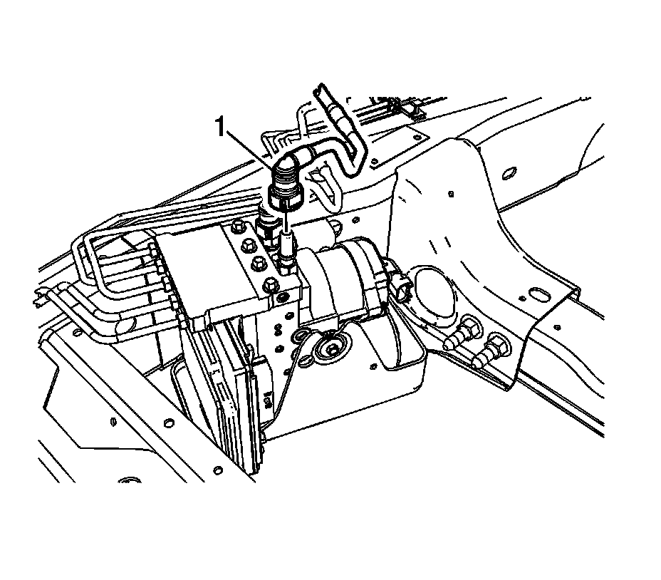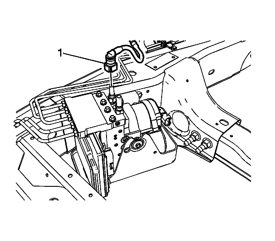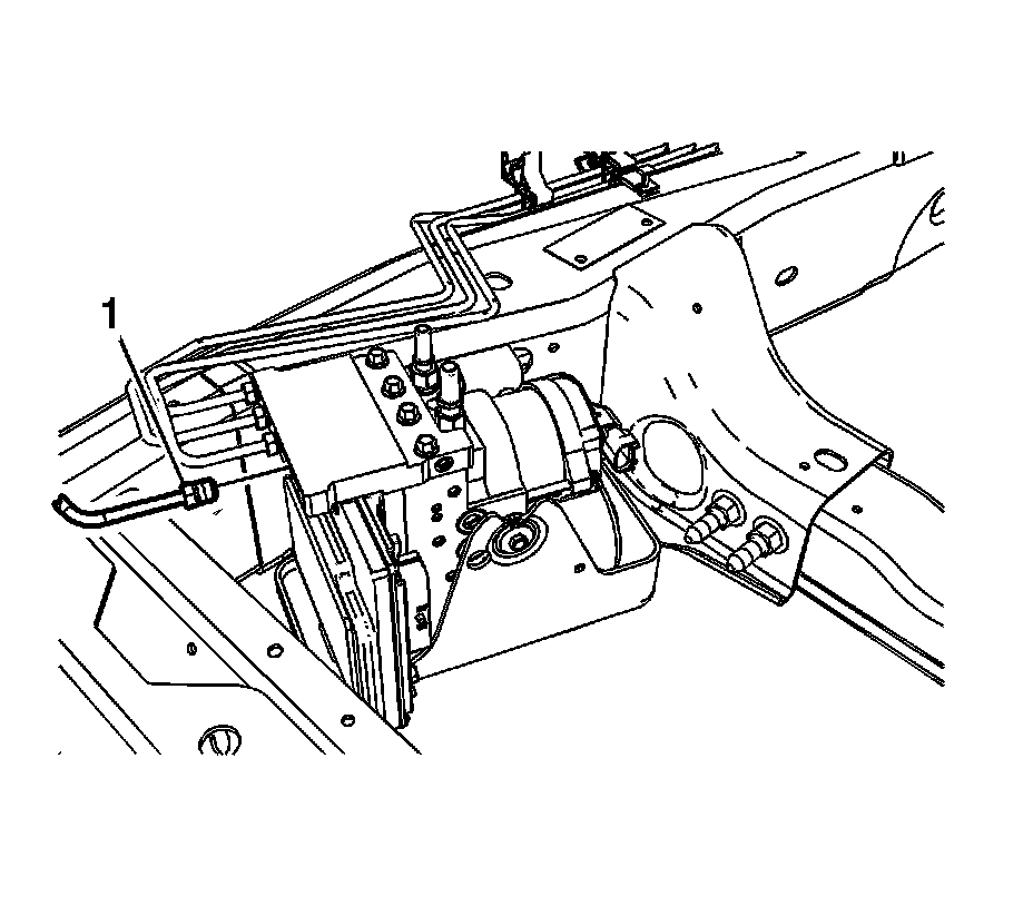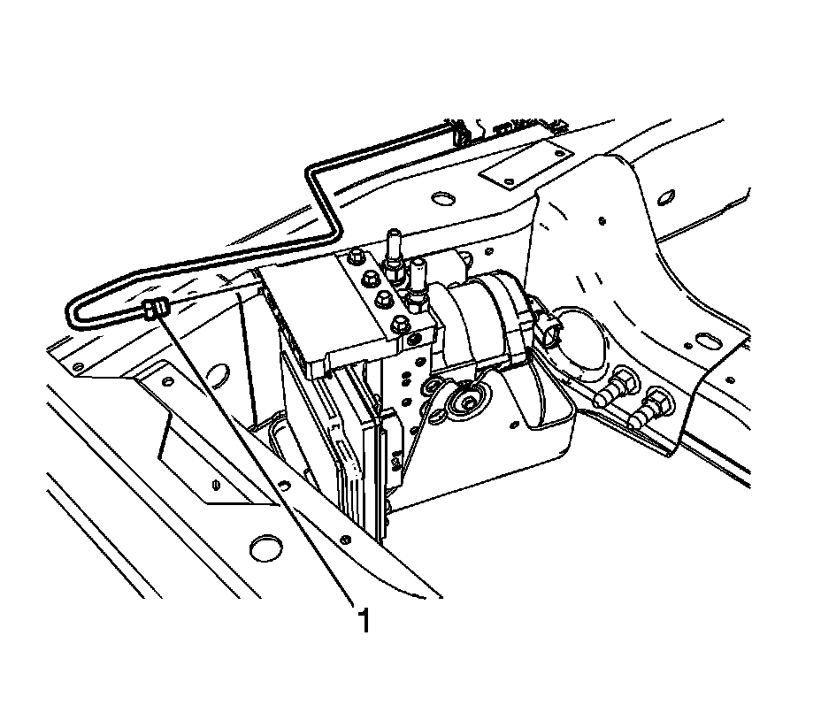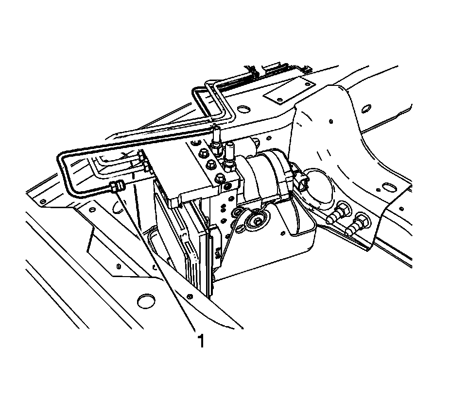 6. Slide the EBCM/BPMV and bracket assembly (1) toward the rear of the vehicle and install the assembly to the vehicle frame.