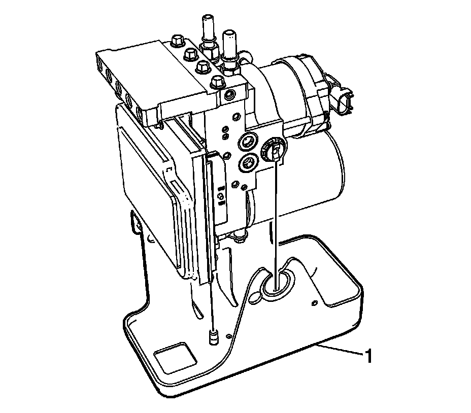 17. Slide the EBCM/BPMV and bracket assembly (1) toward the front of the vehicle and remove the assembly from the vehicle frame.