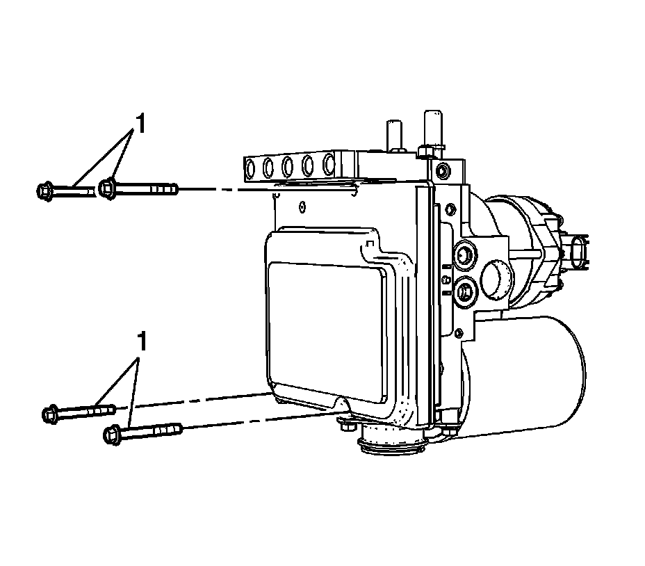 4. Remove the ABS module splash shield bolts (1).