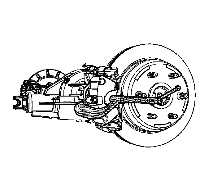 5. Remove the tire and wheel assembly. Refer to Tire and Wheel Removal and Installation .