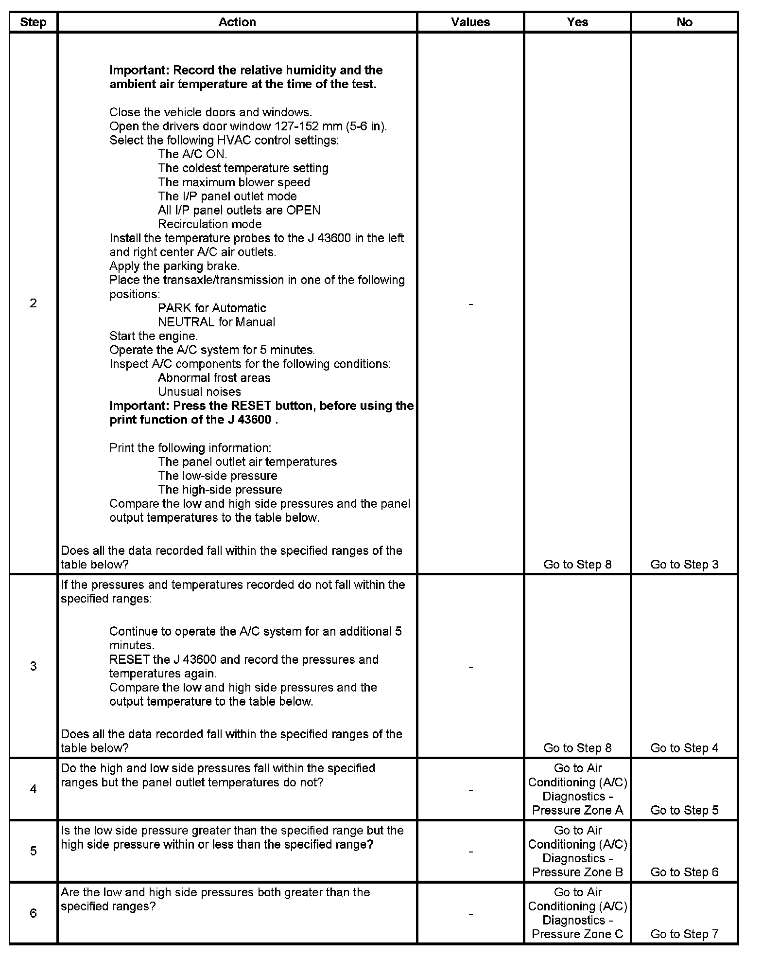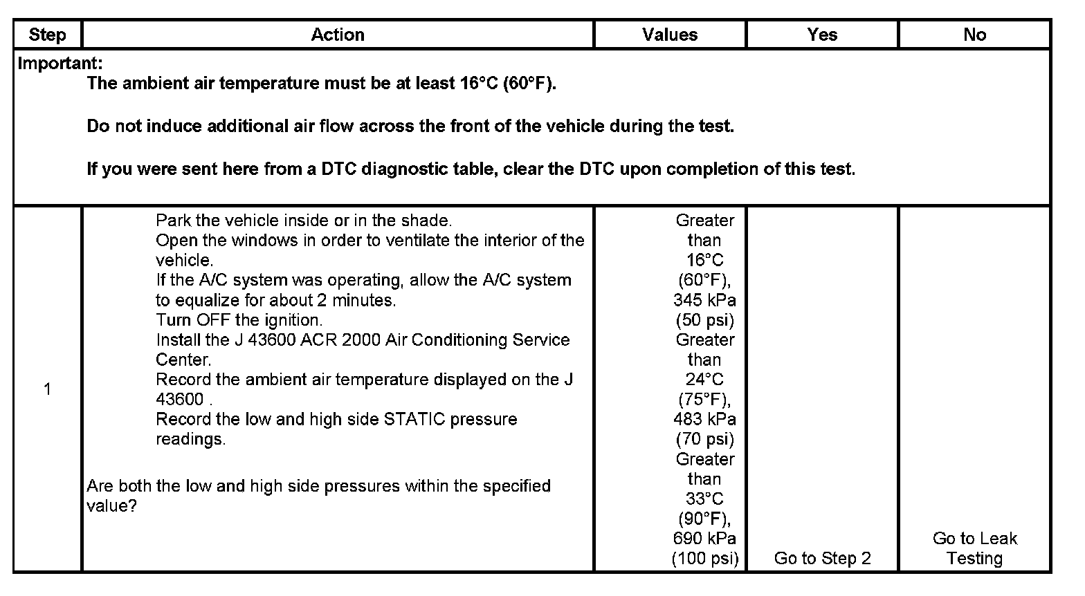 1. This step determines if the A/C system has at least the minimum refrigerant charge required to operate the system without damage.
