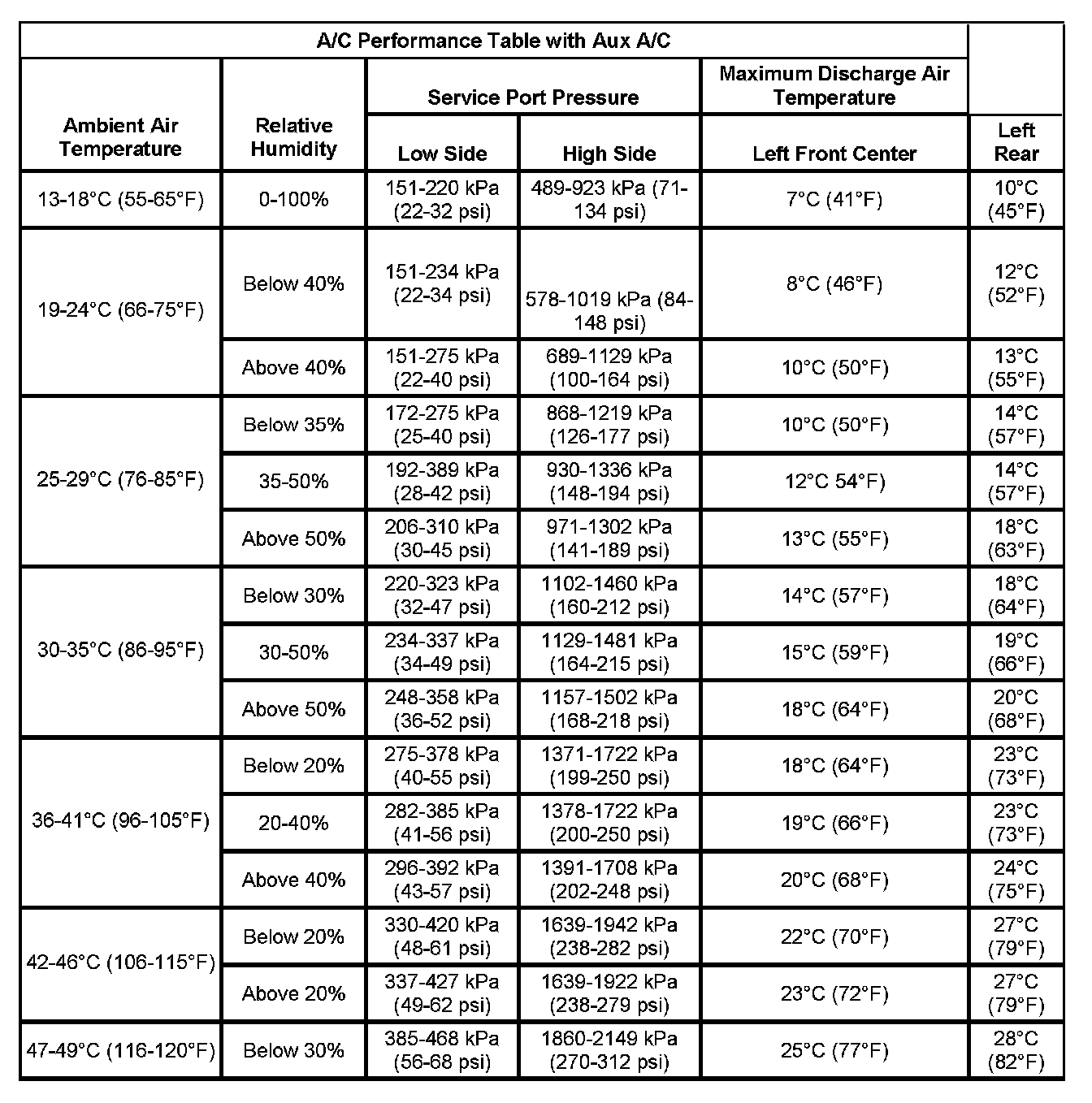 A/C System Pressure - Zone Classification with Aux A/C