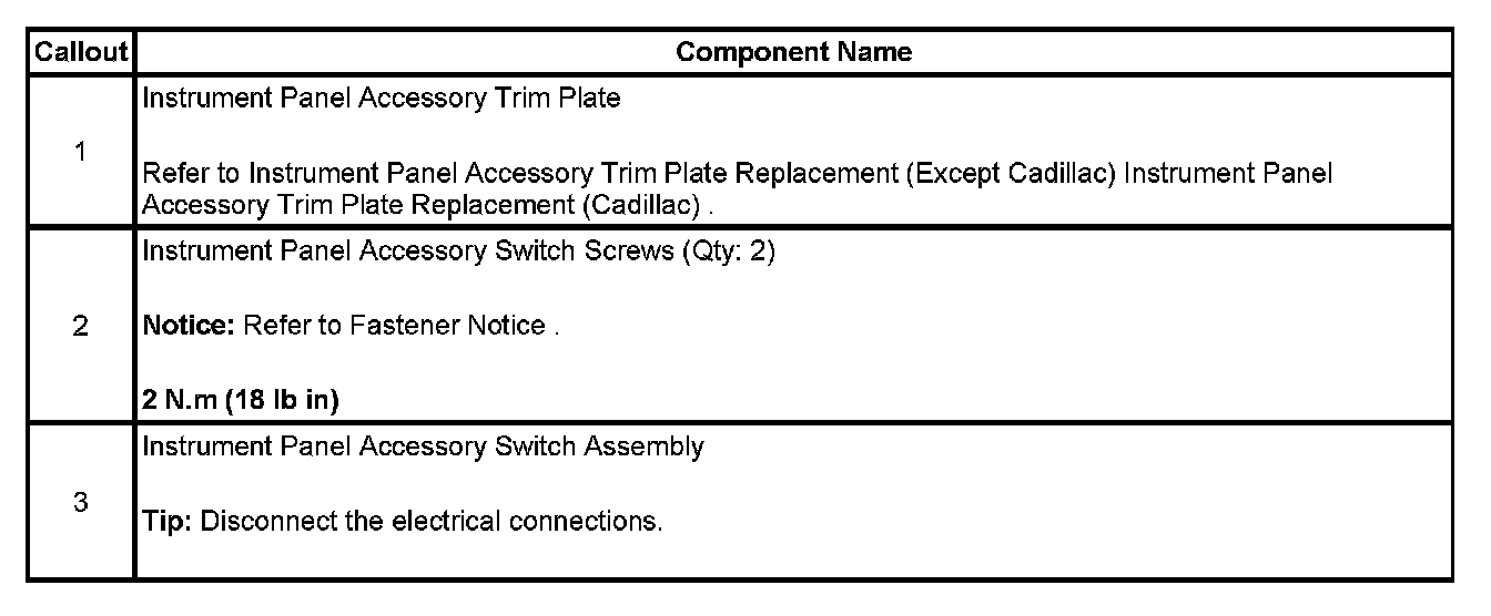 Accessory Switch Replacement (Except Cadillac)