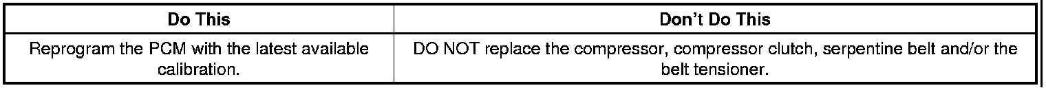 Subject: Air Conditioning (A/C) Compressor and/or Serpentine Belt Noise at Vehicle Start-up (Reprogram Powertrain Control Module (PCM))